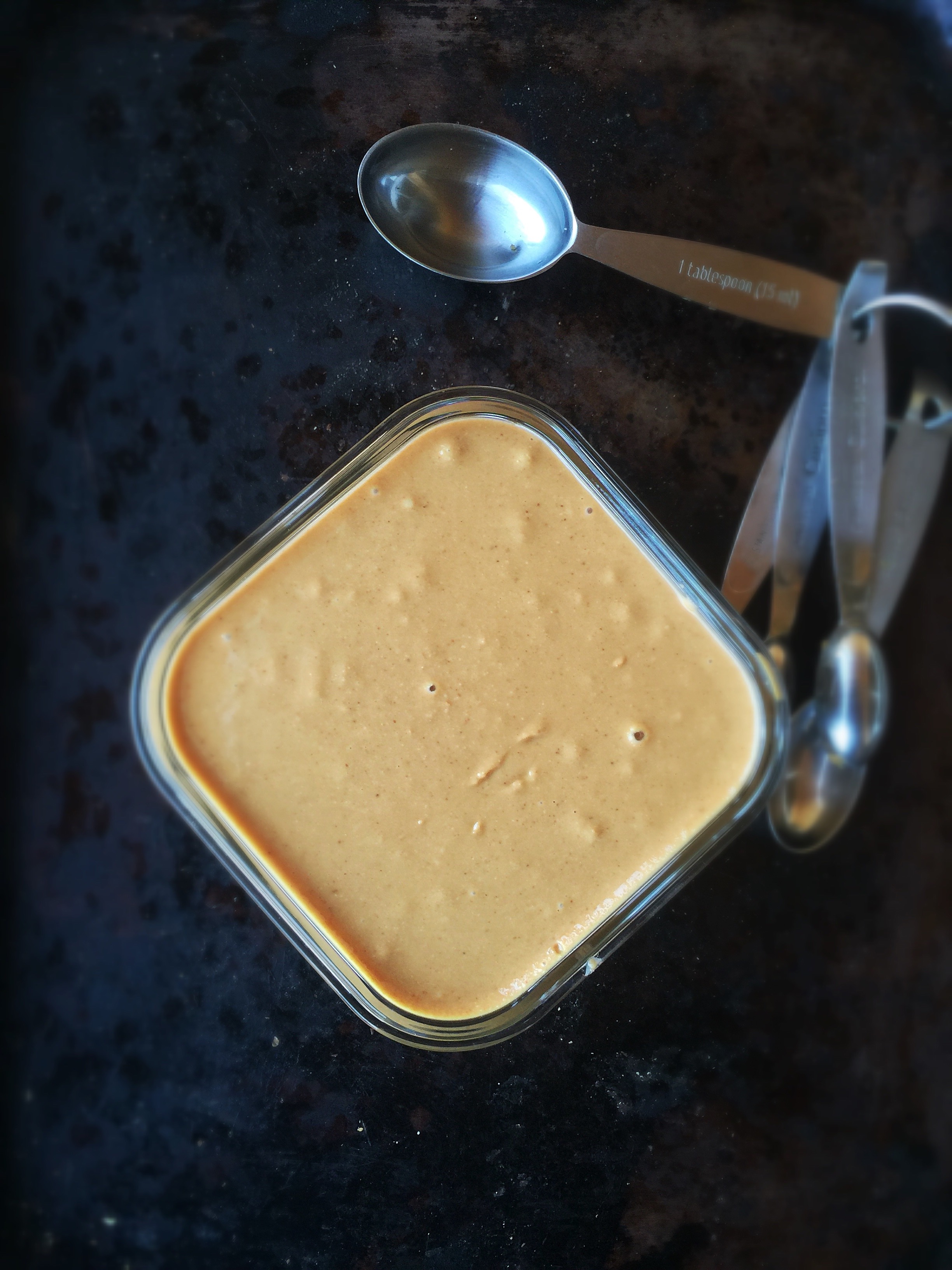 - Add oil and process for several minutes until you achieve a smooth, creamy and runny consistency
